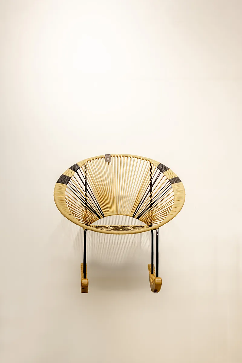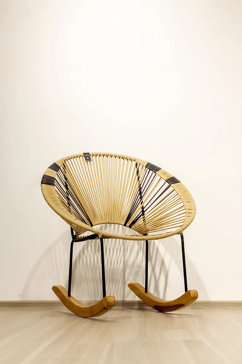 JUEGO DE MECEDORAS EN MATERIAL MIMBRE VIENEN DOS MECEDORAS Y LA MESA DE CENTRO (LA MECEDORA INDIVIDUAL SOBRE PEDIDO)